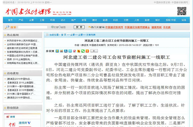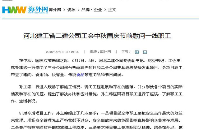 人民日報海外網(wǎng)等10余家媒體報道公司領(lǐng)導雙節期間慰問(wèn)一線(xiàn)職工