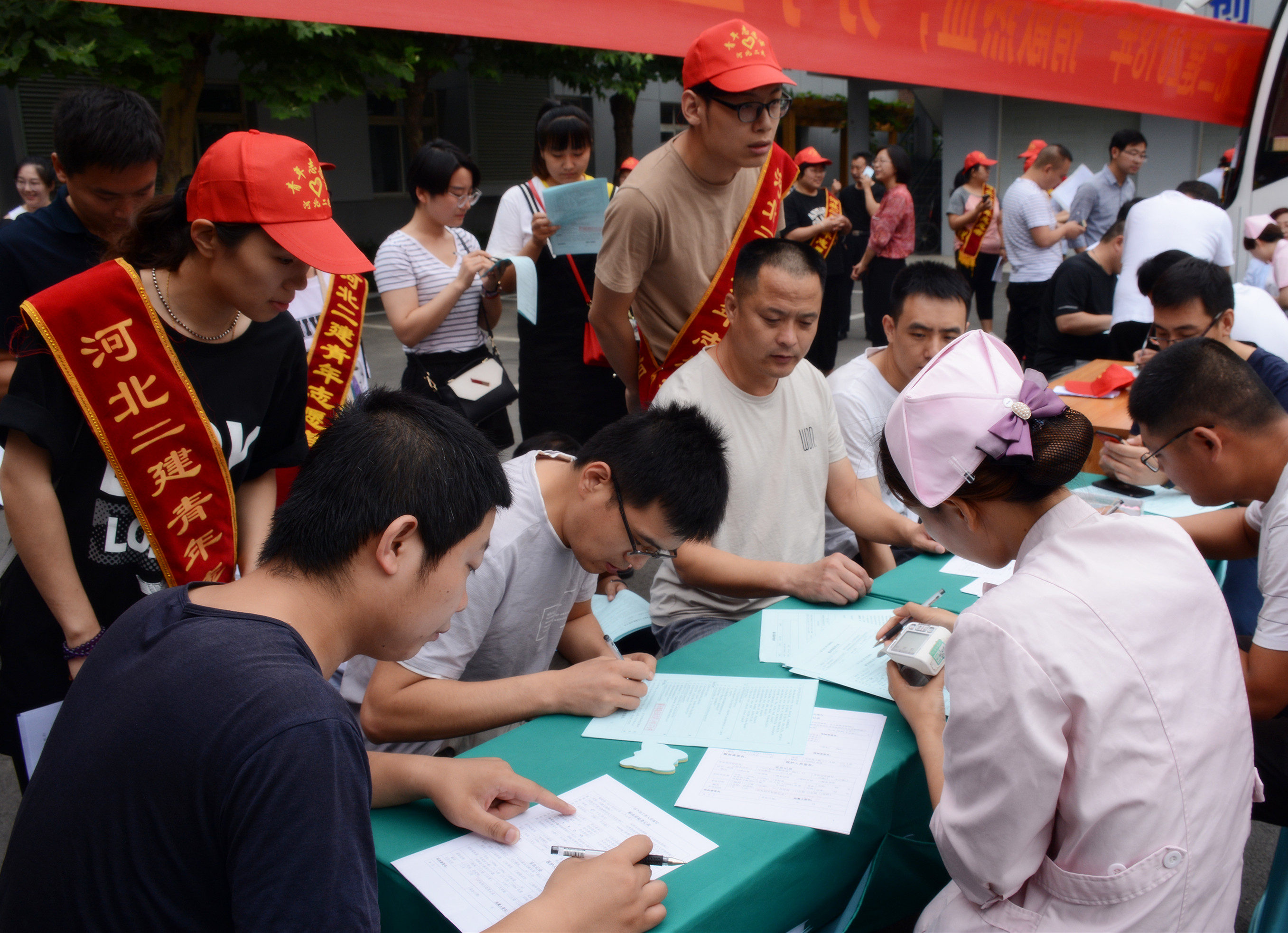 為保證獻血活動(dòng)有序進(jìn)行,黨工部招募了21名志愿者,他們身披“河北二建志愿者”綬帶,頭戴“河北二建志愿者”小紅帽,不到八點(diǎn)就來(lái)到公司機關(guān)大院忙碌起來(lái),搬桌子、椅子和飲用水,掛條幅、貼車(chē)號。上午8:30獻血活動(dòng)正式開(kāi)始,從登記信息、測量血壓、檢驗血液到獻血,都在志愿者的熱情配合下井然有序地進(jìn)行著(zhù)。