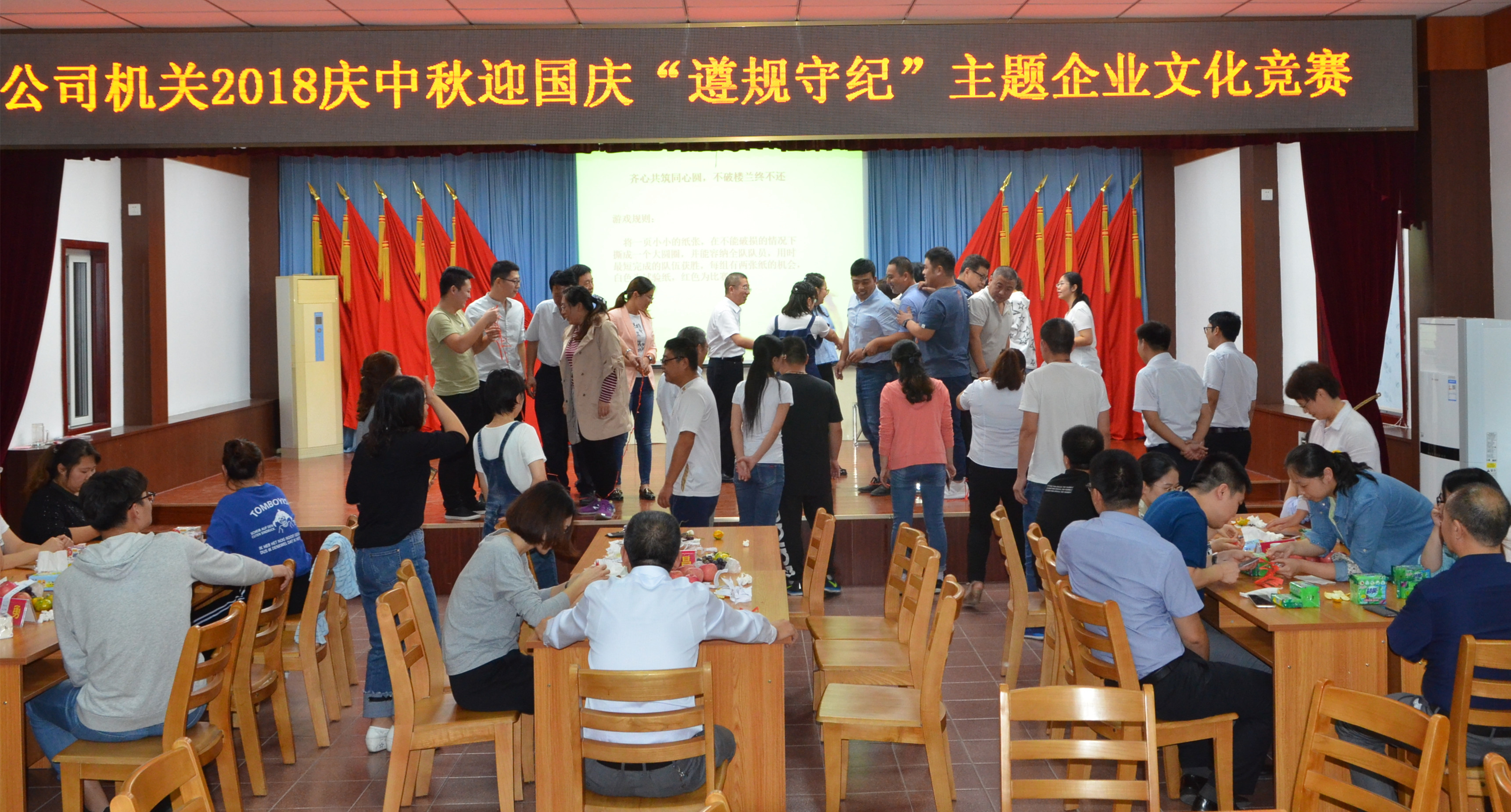 金桂飄香,人月兩圓,在中秋、國慶兩大節日即將到來(lái)之際,為進(jìn)一步增強全體職工遵規守紀意識,弘揚團結向上、奮發(fā)有為的精神風(fēng)貌,增強公司職工的凝聚力和向心力。9月21日下午,公司機關(guān)黨總支部、機關(guān)工會(huì )、機關(guān)團支部在公司培訓中心聯(lián)合舉辦了慶中秋迎國慶“遵規守紀”主題企業(yè)文化競賽活動(dòng),公司黨委書(shū)記、董事長(cháng)鄭青昌,黨委副書(shū)記、總經(jīng)理王勇及其他在石公司領(lǐng)導同公司機關(guān)、華南公司、河南分公司和信息科技公司等70余名職工一同參加了競賽活動(dòng)。