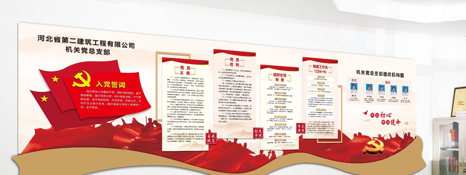 為貫徹學(xué)習十九大精神,進(jìn)一步加強黨支部建設,河北二建機關(guān)黨總支部精心策劃,設計了方便黨員學(xué)習活動(dòng)的專(zhuān)用活動(dòng)室。