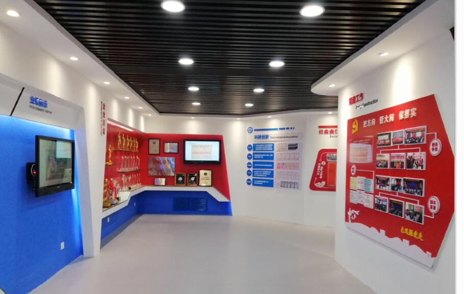 公司文化展室坐落在三樓東側,面積60余平方米。公司黨委從2017年7月開(kāi)始策劃,并就規劃設計方案對外公開(kāi)招標,最終從三家入圍的設計中,優(yōu)選了一家從設計構思、基調選配、特色展示等各方面都較優(yōu)秀的設計方案,作為公司企業(yè)文化展室的設計構圖。今年9月底,按照設計方案進(jìn)行了施工招標,并選定了一家有實(shí)力且價(jià)格最低的單位組織施工建設。期間與設計單位溝通變更30余次,最終確定了以形象墻、企業(yè)簡(jiǎn)介、歷史沿革、工程案例、企業(yè)榮譽(yù)、科技創(chuàng )新、社會(huì )責任職工風(fēng)采、黨建工作和企業(yè)愿景等9個(gè)版塊展示企業(yè)形象。
