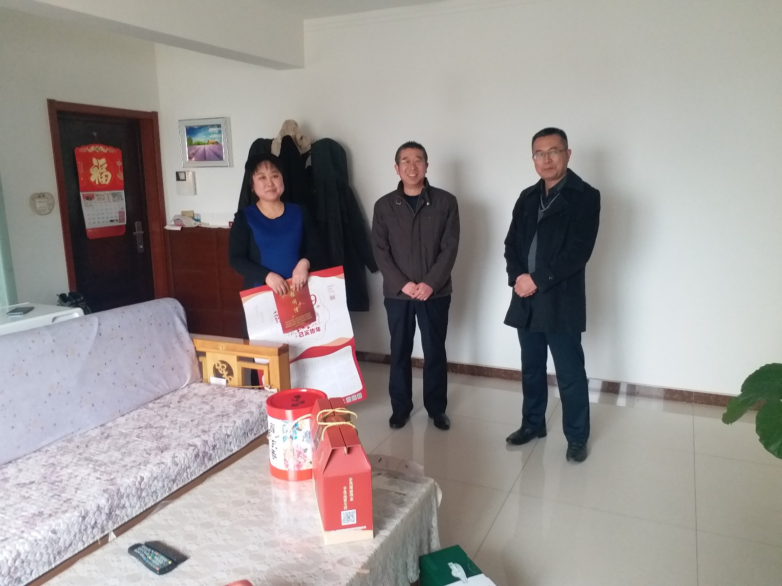 當天下午,孫建格等一行人來(lái)到阜陽(yáng)項目施工員關(guān)碩的家中,對其家屬進(jìn)行了親切的慰問(wèn)。孫建格與其家屬親切交談,詳細了解了關(guān)碩家里的生活情況。他代表公司感謝關(guān)碩的家屬支持春節期間仍堅持工作在一線(xiàn)的職工,同時(shí)把牛奶、堅果、熟食和年畫(huà)等春節慰問(wèn)品以及公司慰問(wèn)信交到了關(guān)碩母親的手中,代表公司向她全家送去了誠摯的新春祝福。關(guān)碩的母親對公司領(lǐng)導的關(guān)懷表示感謝,同時(shí)表示理解和支持兒子的工作。
