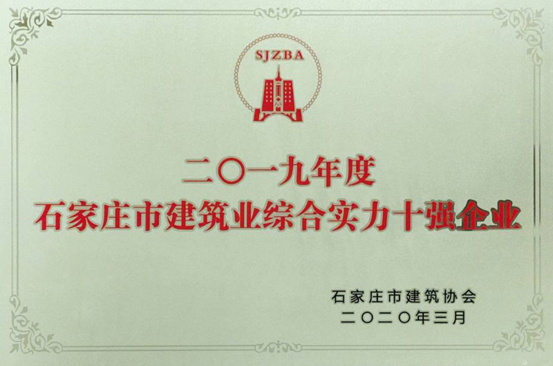 二0一九年度石家莊市建筑業(yè)綜合實(shí)力十強企業(yè)