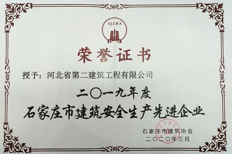 2019年度石家莊市建筑安全生產(chǎn)先進(jìn)企業(yè)