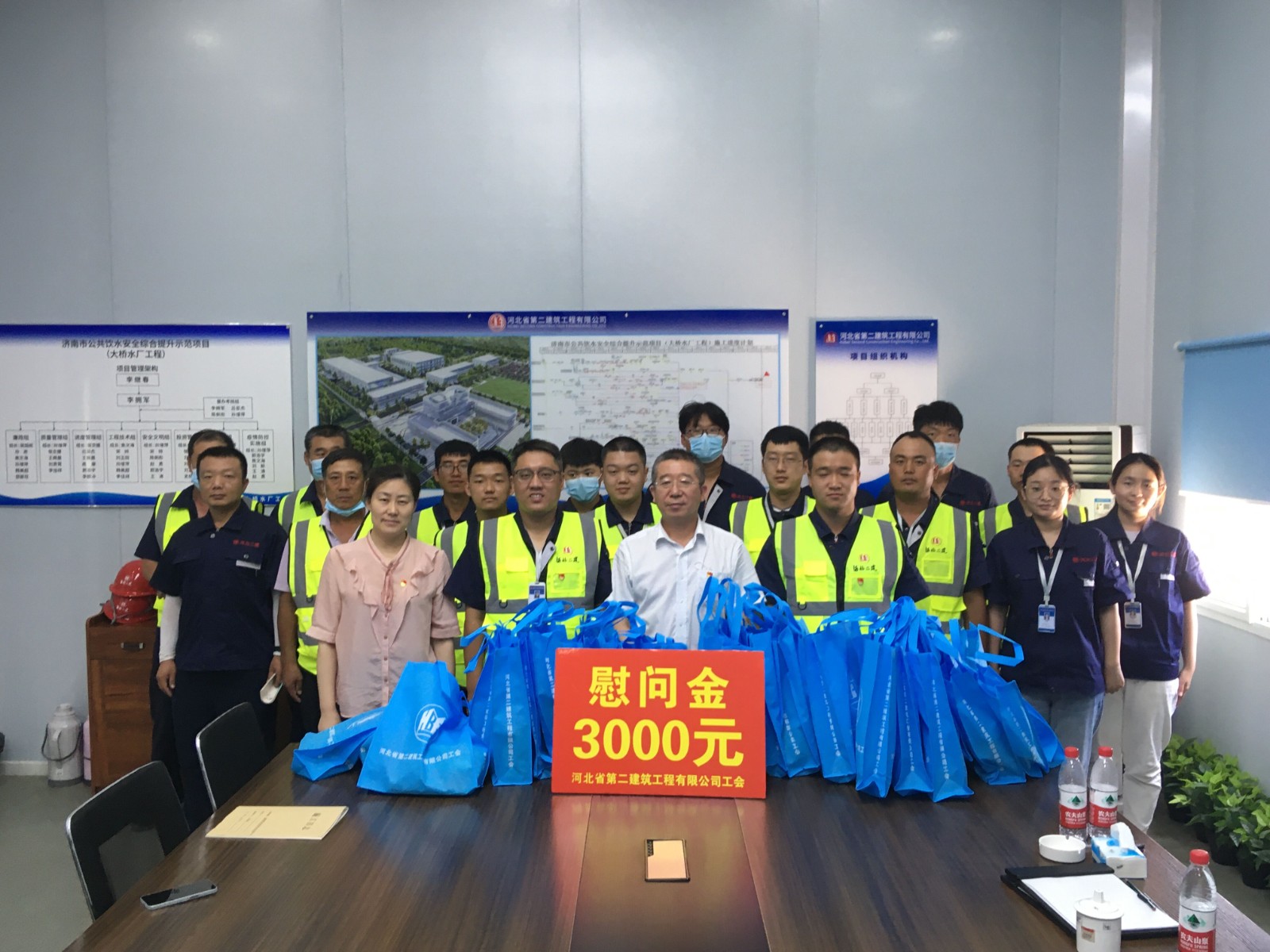 7月1日,在建黨節來(lái)臨之際,公司黨委副書(shū)記、紀委書(shū)記、工會(huì )主席孫建格一行到二分公司大橋水廠(chǎng)項目指導工作,看望慰問(wèn)了奮戰一線(xiàn)的全體職工。分公司黨總支部書(shū)記、副經(jīng)理張德發(fā)參加。
